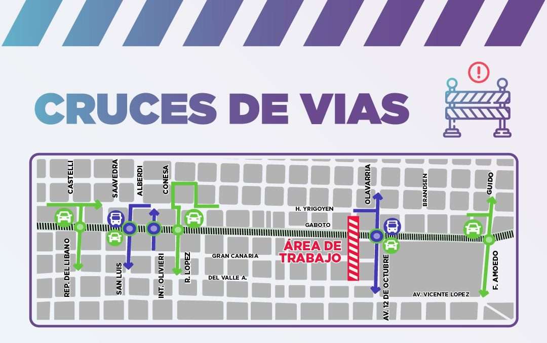 De esta manera se recomiendan los siguientes desvíos en el caso de los autos particulares: cruce a nivel de República del Líbano/Castelli; paso bajo vías de Saavedra/San Luis; paso bajo vías de Intendente Oliveri/Alberdi; cruce a nivel de Conesa/Rodolfo López; cruce a nivel de avenida 12 de Octubre/Olavarría, y el paso bajo vías de Felipe Amoedo/Guido.
