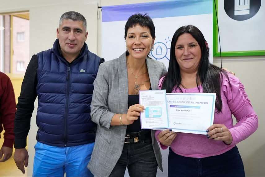 Además, se desarrollaron 13 cursos descentralizados en distintos puntos del distrito, con la entrega de 500 carnets adicionales. Las capacitaciones se dictaron en espacios educativos y productivos como el Centro Integrador Comunitario del barrio La Paz, UTHGRA, la Cámara Gastronómica, Lácteos Foggia y el Anexo Municipal de Solano, entre otros.