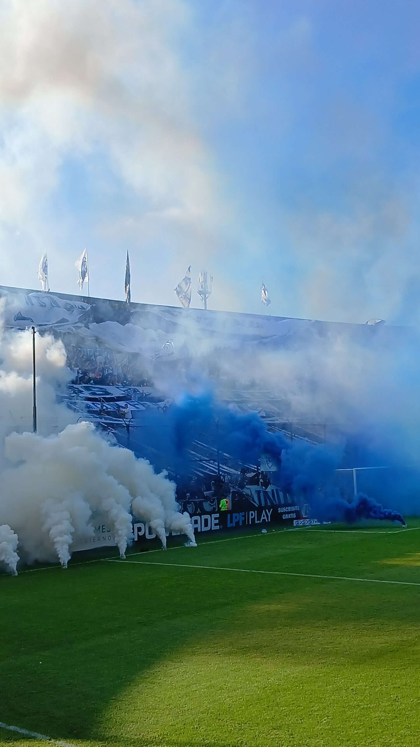 El clima se encendió desde la previa. La salida de los equipos estuvo acompañada por una escenografía intensa de humo, banderas y canciones que evocaron épocas en las que la convivencia en las canchas era moneda corriente. Desde la tribuna Horacio Milozzi, mas de cinco mil hinchas del conjunto de Mataderos aportaron su impronta y protagonizaron un vibrante contrapunto con la parcialidad Cervecera.
