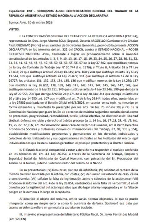 La Justicia suspendió la reforma laboral, tras el reclamo de la CGT